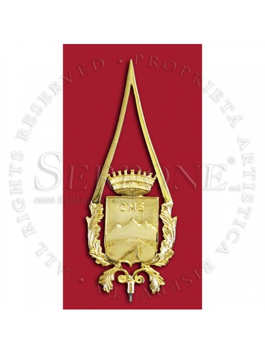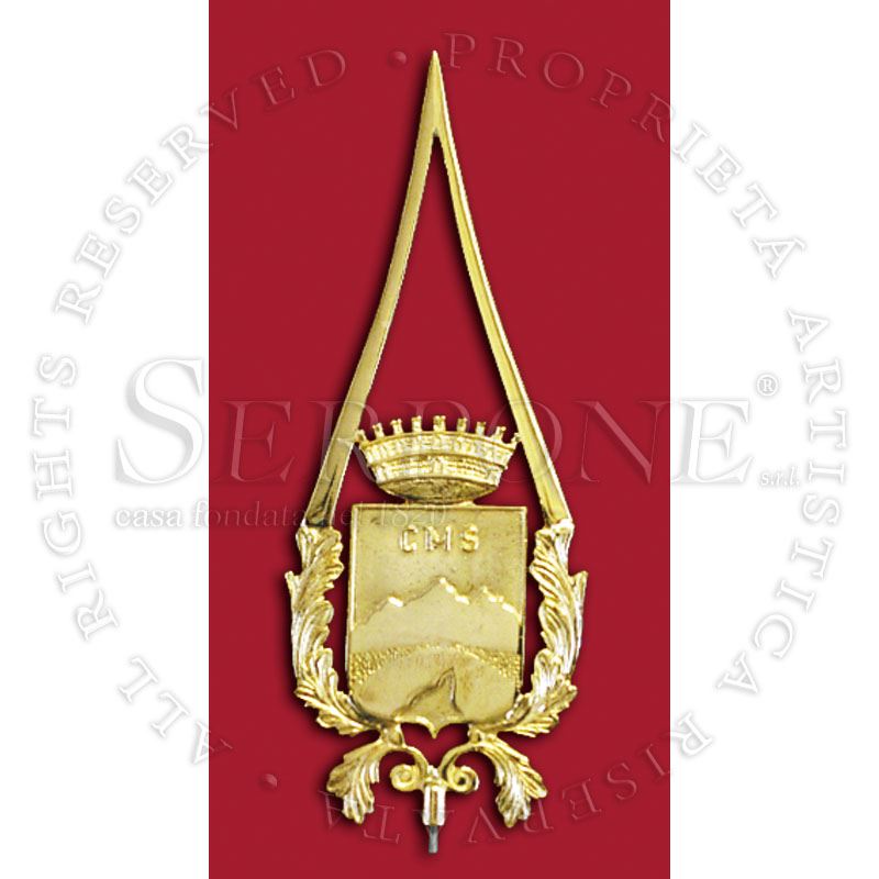 LANCIA PER GONFALONI COMUNALI Lancia per gonfaloni comunali, alta cm 31, con il Vostro stemma comunale riprodotto a bassorilievo, realizzata in bronzo dorato o argentato. Art. 269 - alta cm 31
