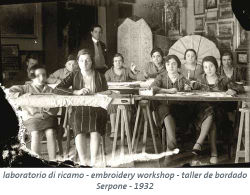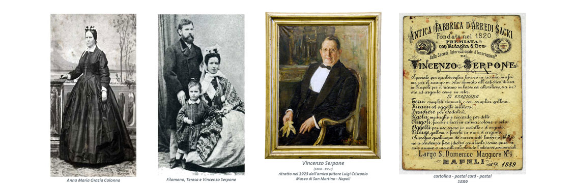 Alla Colonna subentrano la figlia Teresa con il marito, Filomeno Serpone, fino ad allora funzionario della Real Fabbrica dei Tabacchi. Questi decide di investire nel piccolo laboratorio ampliandolo, aumentando la manodopera con una scuola interna di ricamo ed accrescendo le vendite per mezzo di messi viaggiatori. La ditta prende il nome di “Casa di ricami artistici Serpone”.