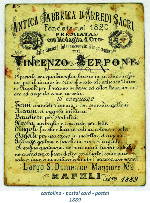 Con l’aiuto del marito Vincenzo Fontana, già industrioso commerciante di tessuti per Chiesa, la vendita si estende al Clero, in una città il cui fervore religioso è testimoniato dalla presenza di ben 400 chiese nella sola cinta urbana. La produzione è limitata ma di alto pregio.