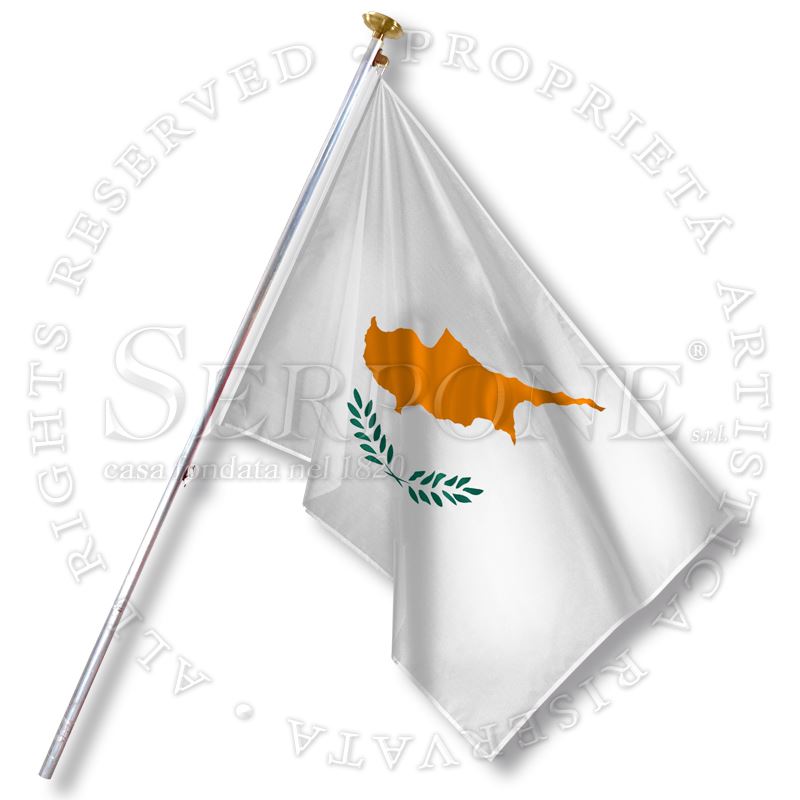 Bandiera Cipro in tessuto poliestere nautico da 115 g/m2, alta resistenza, confezionata con doppie cuciture, guaina in poliestere robusto, corda in poliestere alta tenacità, in varie misure, uso esterno o interno (asta non inclusa)