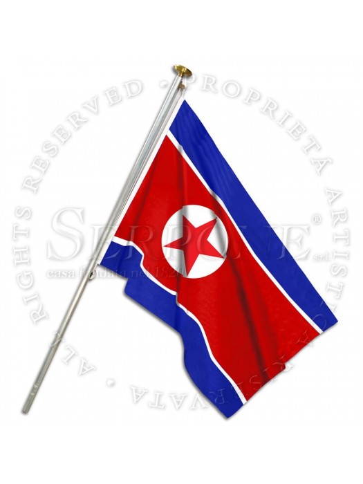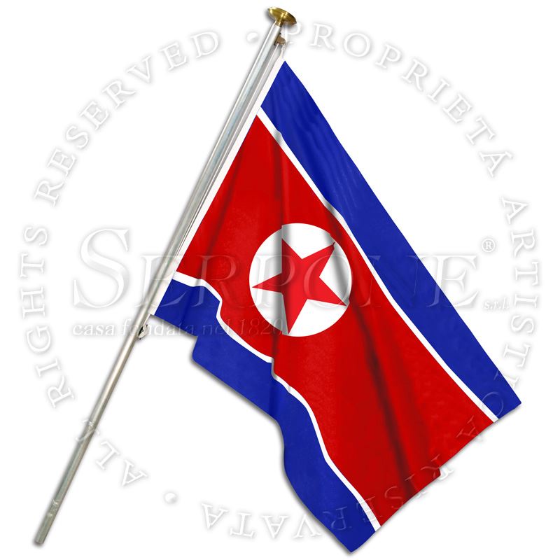 Bandiera Corea del Nord in tessuto poliestere nautico da 115 g/m2, alta resistenza, confezionata con doppie cuciture, guaina in poliestere robusto, corda in poliestere alta tenacità, in varie misure, uso esterno o interno (asta non inclusa)