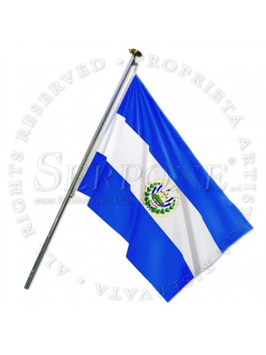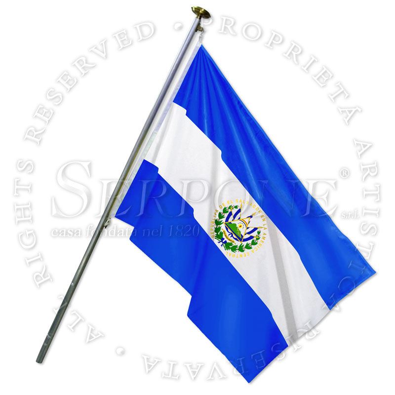 Bandiera El Salvador in tessuto poliestere nautico da 115 g/m2, alta resistenza, confezionata con doppie cuciture, guaina in poliestere robusto, corda in poliestere alta tenacità, in varie misure, uso esterno o interno (asta non inclusa)