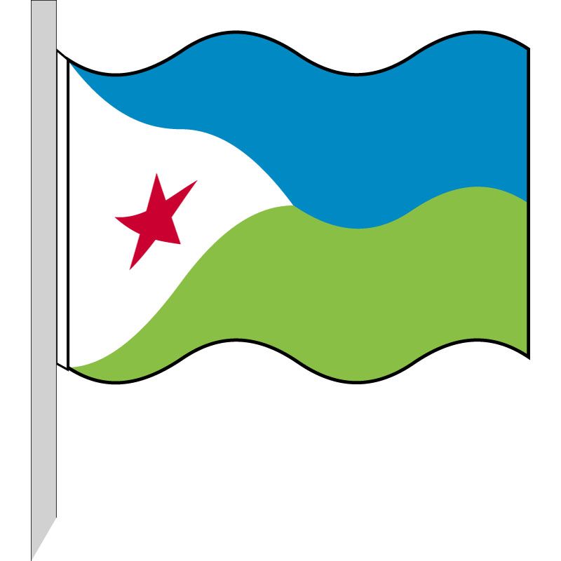Bandiera Gibuti in tessuto poliestere nautico da 115 g/m2, alta resistenza, confezionata con doppie cuciture, guaina in poliestere robusto, corda in poliestere alta tenacità, in varie misure, uso esterno o interno (asta non inclusa)