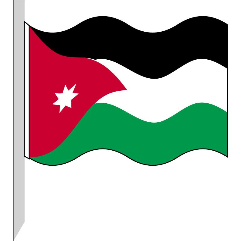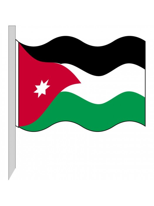 Bandiera Giordania in tessuto poliestere nautico da 115 g/m2, alta resistenza, confezionata con doppie cuciture, guaina in poliestere robusto, corda in poliestere alta tenacità, in varie misure, uso esterno o interno (asta non inclusa)