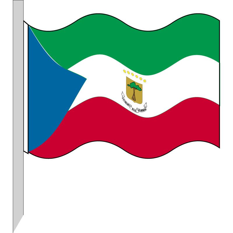 Bandiera Guinea Equatoriale in tessuto poliestere nautico da 115 g/m2, alta resistenza, confezionata con doppie cuciture, guaina in poliestere robusto, corda in poliestere alta tenacità, in varie misure, uso esterno o interno (asta non inclusa)