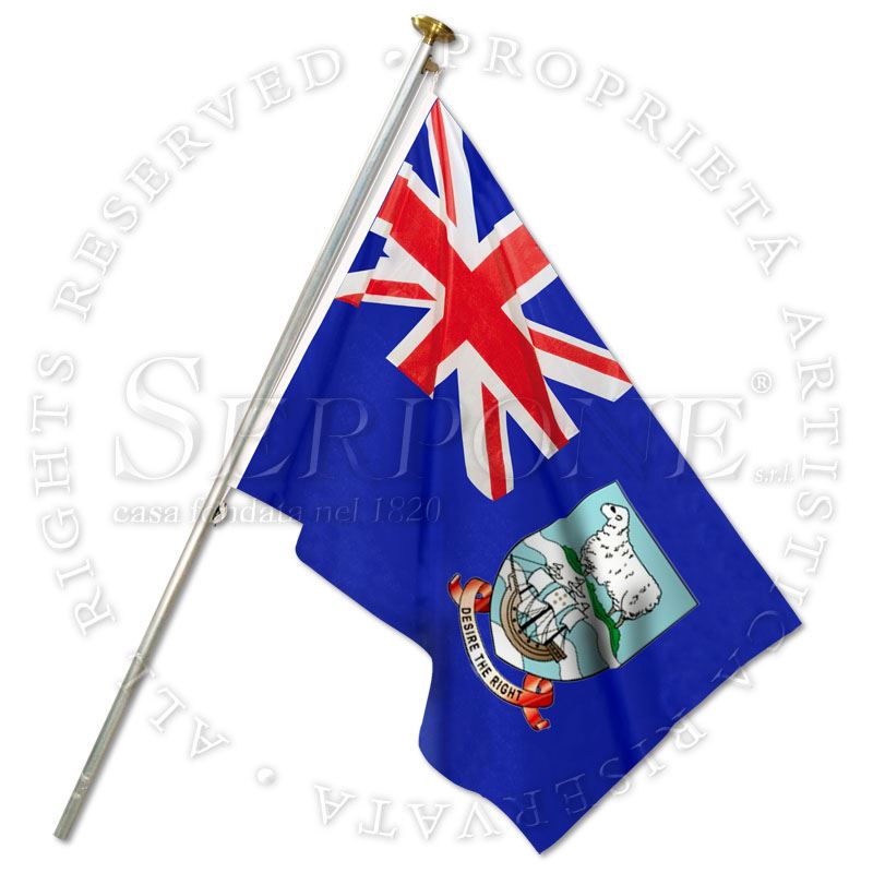 Bandiera Isole Falkland in tessuto poliestere nautico da 115 g/m2, alta resistenza, confezionata con doppie cuciture, guaina in poliestere robusto, corda in poliestere alta tenacità, in varie misure, uso esterno o interno (asta non inclusa)