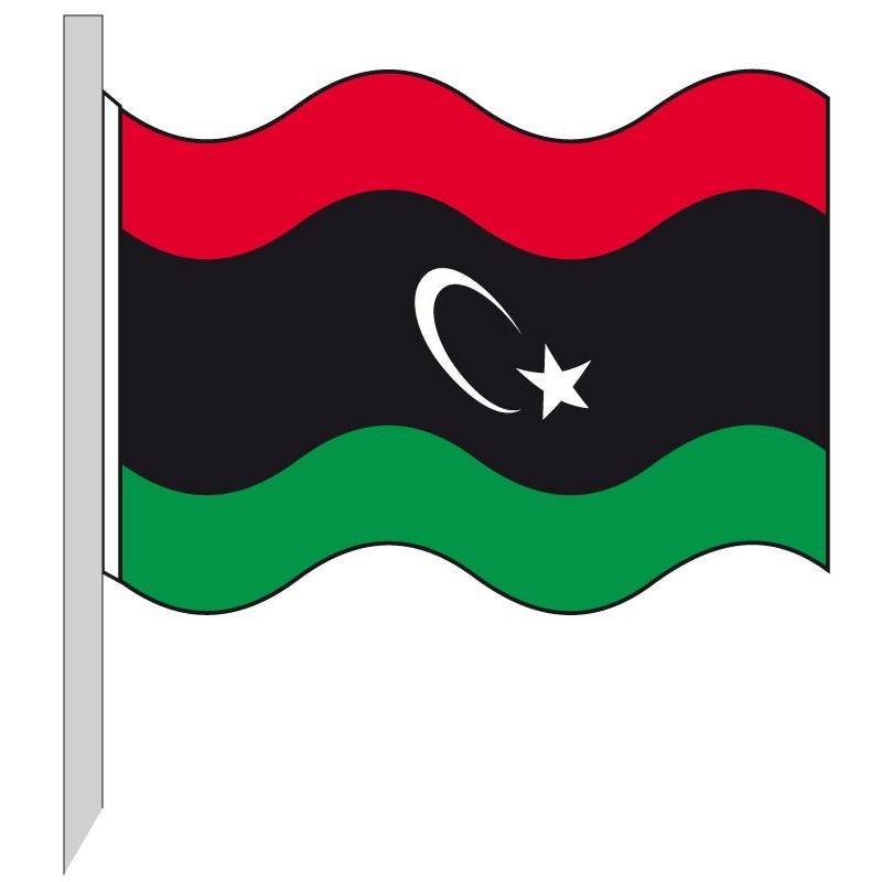 Bandiera Libia in tessuto poliestere nautico da 115 g/m2, alta resistenza, confezionata con doppie cuciture, guaina in poliestere robusto, corda in poliestere alta tenacità, in varie misure, uso esterno o interno (asta non inclusa)