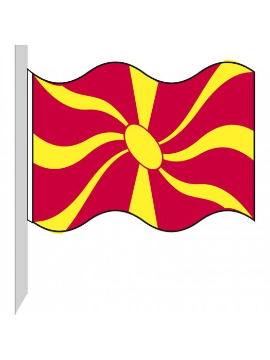 Bandiera Macedonia del Nord in tessuto poliestere nautico da 115 g/m2, alta resistenza, confezionata con doppie cuciture, guaina in poliestere robusto, corda in poliestere alta tenacità, in varie misure, uso esterno o interno (asta non inclusa)
