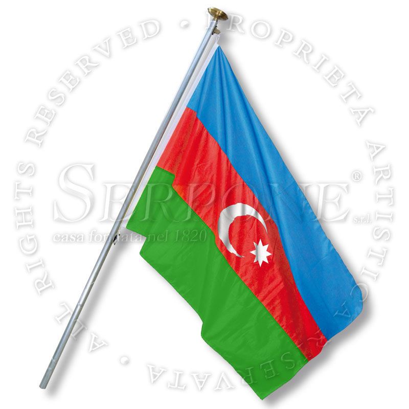 Bandiera Azerbaigian in tessuto poliestere nautico da 115 g/m2, alta resistenza, confezionata con doppie cuciture, guaina in poliestere robusto, corda in poliestere alta tenacità, in varie misure, uso esterno o interno (asta non inclusa)