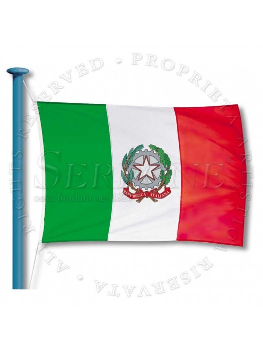 Bandiera Tricolore con emblema dello Stato. Bandiera nazionale costituita dal tricolore Italiano, caricato al centro della fascia bianca dell'emblema dello Stato. Obbligatoria per i mezzi navali e natanti in servizio governativo non commerciale. (D.P.R. 15 marzo 2010, n.90, Art. 281/291) Definizione di «servizio governativo non commerciale»: l'impiego della nave e del galleggiante in attività d'istituto delle amministrazioni dello Stato, alle quali sono attribuite competenze in materia di: pubblica sicurezza, protezione dagli incendi, protezione dell'ambiente marino, trasporto di mezzi e di personale per la pubblica utilità e per le esigenze dell'amministrazione penitenziaria, intervento in caso di calamità; sperimentazione tecnologica e ricerca scientifica oceanografica o ambientale marina. Cod. 117 - In poliestere nautico