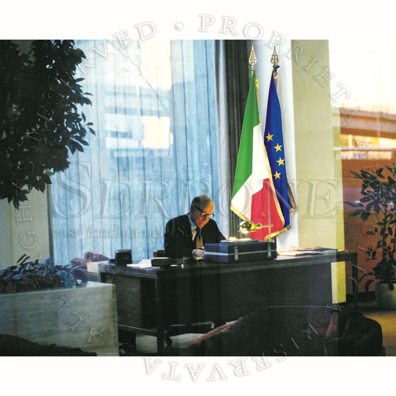 COMPLETI RICAMATI PER UFFICIO Completi per uffici, dell’ Italia o dell’ Europa, composti da: una bandiera in faglia bemberg, confezionata con frangia dorata all’orlo; un’ asta in ottone nichelato in due pezzi; una lancia dorata; una base in metallo cromato. Disponibile nelle misure: - Misura bandiera cm 80 x 120 - Misura bandiera cm 100 x 150 Art. 126 - Completi per uffici, dell' Italia o dell' Europa