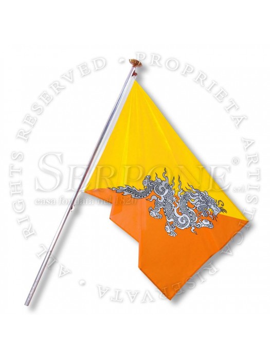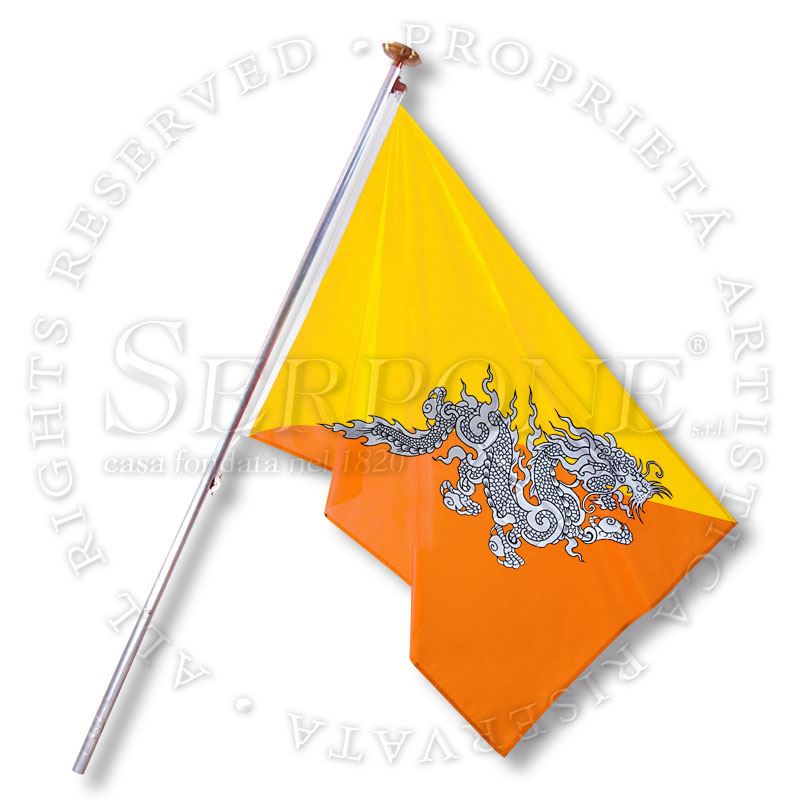 Bandiera Bhutan in tessuto poliestere nautico da 115 g/m2, alta resistenza, confezionata con doppie cuciture, guaina in poliestere robusto, corda in poliestere alta tenacità, in varie misure, uso esterno o interno (asta non inclusa)