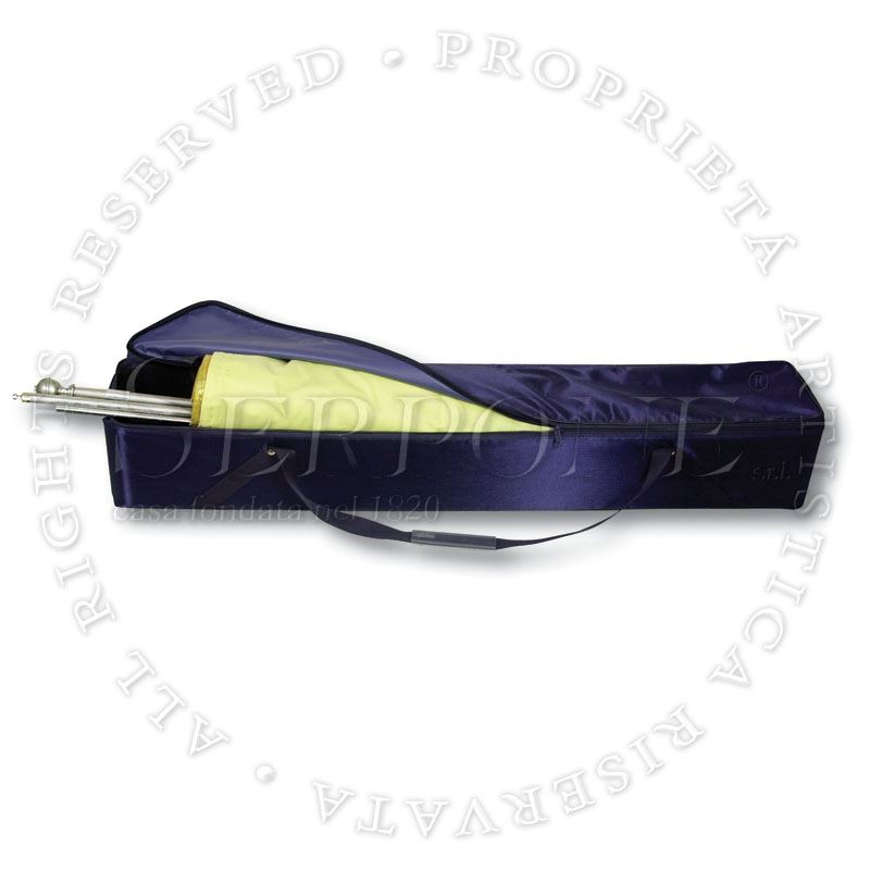 BORSONE SEMI RIGIDO Borsone impermeabile semi rigido, in formato speciale, con 5 lati rigidi, ideato per trasportare e custodire i gonfaloni, i labari e le bandiere con i relativi accessori, senza sgualcirli, misura cm 120. Anche con nome del Comune ricamato. N.B. Occorre l’asta divisibile in tre pezzi. Art. 460 - misura cm 120