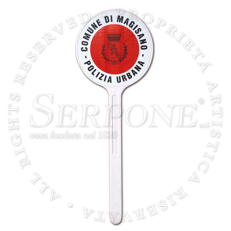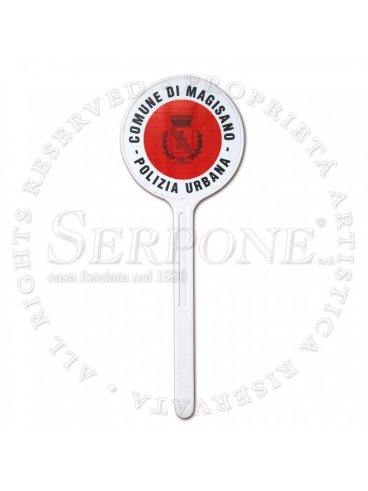 Paletta con stemma e scritte Paletta per Polizia Urbana o altri corpi, in plastica con disco catarifrangente, con stampa dello stemma del Vs Ente o Comune Art 420 - con disco catarifrangente