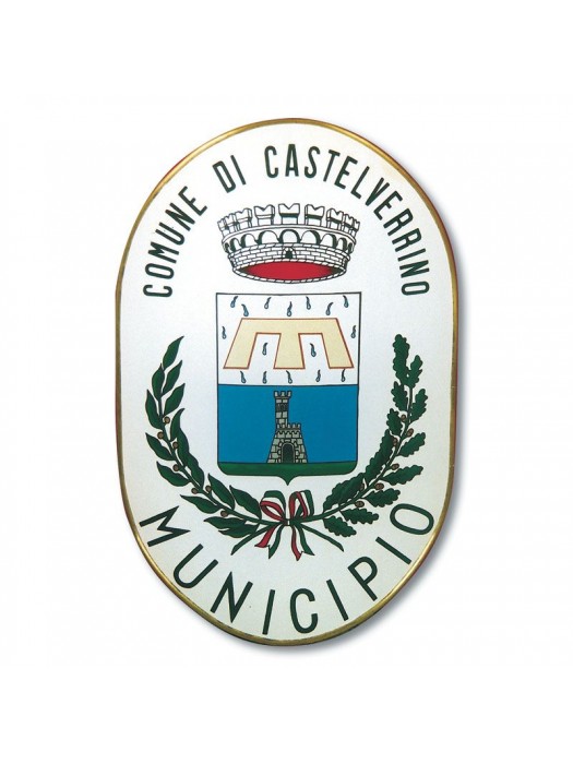 Scudo con Stemma Comunale da Facciata Targa per Municipi, Caserme, Scuole etc. in lastra di metallo smaltata, bordato, con stemma riprodotto con colori inalterabili. Scudo da facciata in metallo con stemma Comunale smaltato
