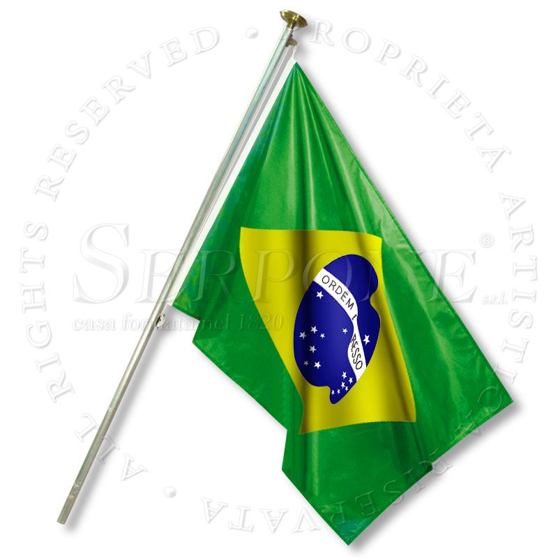 Brazil Flag made of nautical polyester, 115gr/sq-mt, high strength, finished with perimetric double stitching, heading stripe of durable polyester and high tenacity polyester rope, various sizes, indoor or outdoor use (pole not included)