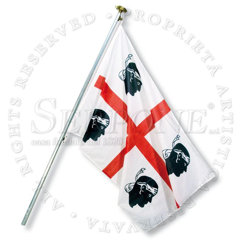 Bandiera Sardegna Bandiera Sardegna in tessuto Poliestere Nautico da 115 g/m2, alta resistenza. Disponibile in varie misure, confezionata con doppie cuciture, guaina e corda. Art. 432esSA - Bandiera Sardegna per esterno in poliestere nautico - Asta non inclusa