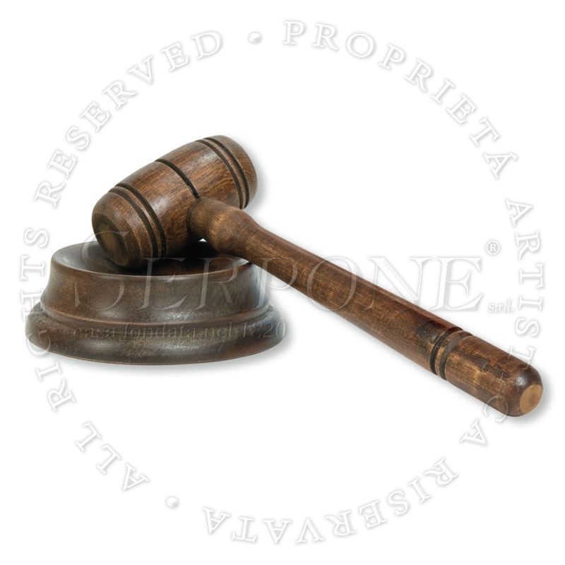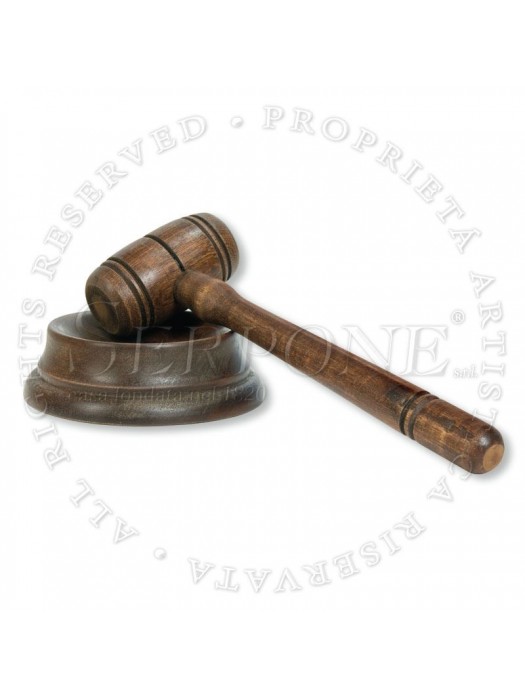 MARTELLO PER BATTITORE Martelletto con basetta, in legno tornito, tinta noce scuro. Martello lungo cm 25, basetta diametro cm 25 Art. 518 - Martelletto con basetta, in legno tornito.