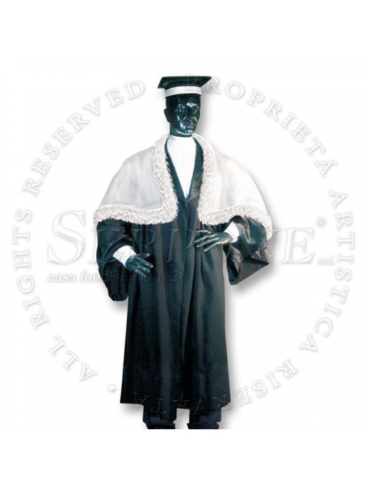 TOGHE E TOCCHI PER UNIVERSITA ' TOGHE E TOCCHI PER UNIVERSITA ’ Toghe realizzate nelle diverse fogge in uso nelle varie Università. Per Laureandi, Ricercatori, Professori e Rettori, in vari tessuti, anche con inserti in pelliccia. Art.161 - Toghe realizzate nelle diverse fogge in uso nelle varie Università