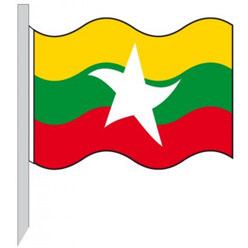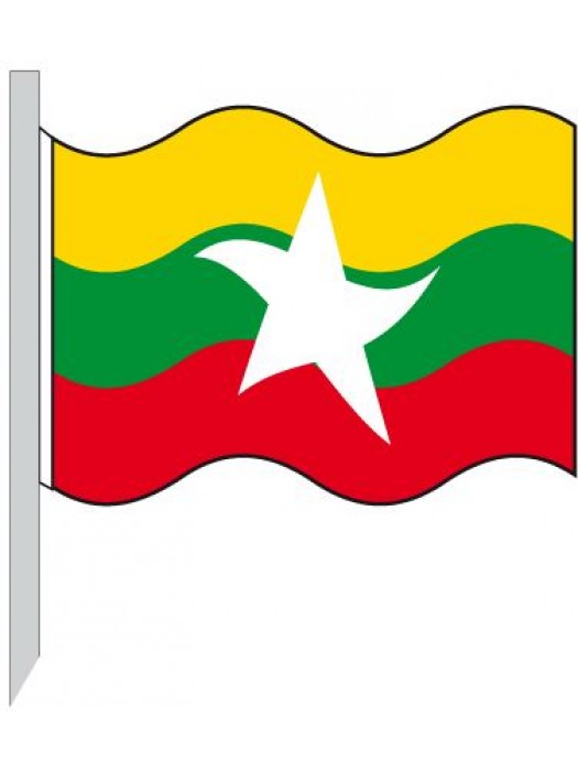 Bandera Myanmar (Birmania) en tejido de poliéster náutico de 115 g/m2, alta resistencia, terminada con doble costura perimétrica, tira de poliéster resistente, cuerda de poliéster de alta tenacidad, en varios tamaños, uso externo o interno (vara no incluida)