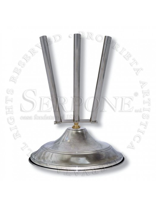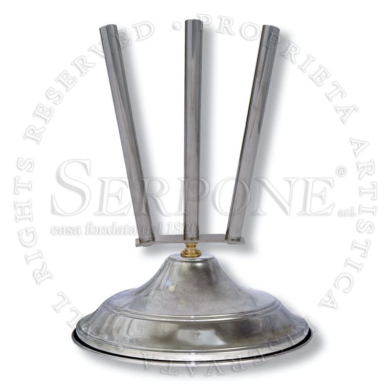 Base in ottone nichelato a 3 innesti Base in ottone nichelato a 3 innesti, diametro cm 30, con zavorra. Se dorate a oro fino aumento 30 % Art. 514 - diametro cm 30