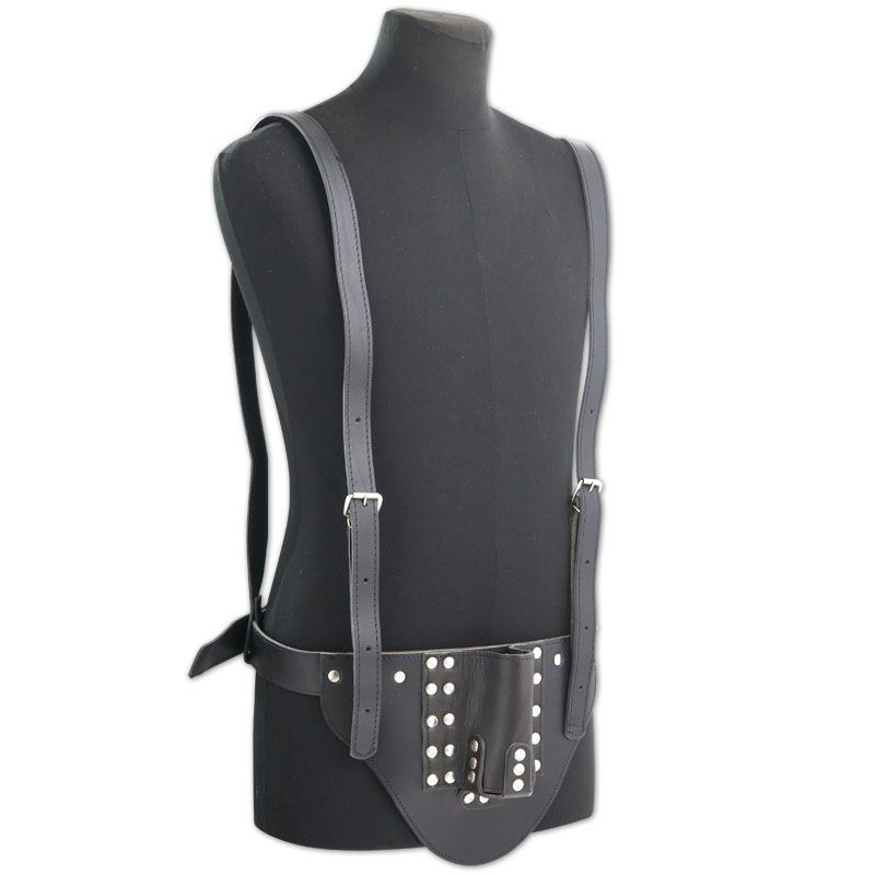 Cinturón lleva Estandarte, en cuero tachonado, correas ajustables, lleva vara reforzado, disponible en los colores: cuero natural, negro o blanco
