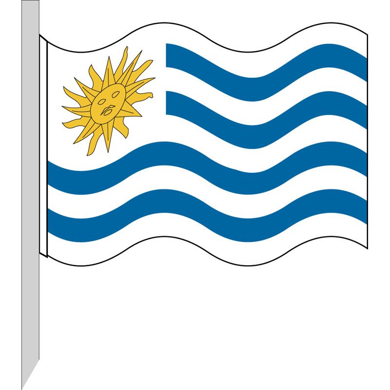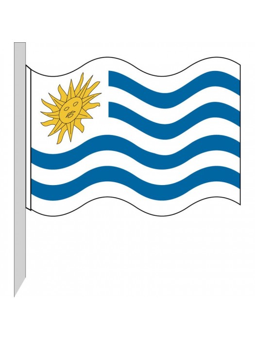 Bandera Uruguay en tejido de poliéster náutico de 115 g/m2, alta resistencia, terminada con doble costura perimétrica, tira de poliéster resistente, cuerda de poliéster de alta tenacidad, en varios tamaños, uso externo o interno (vara no incluida)