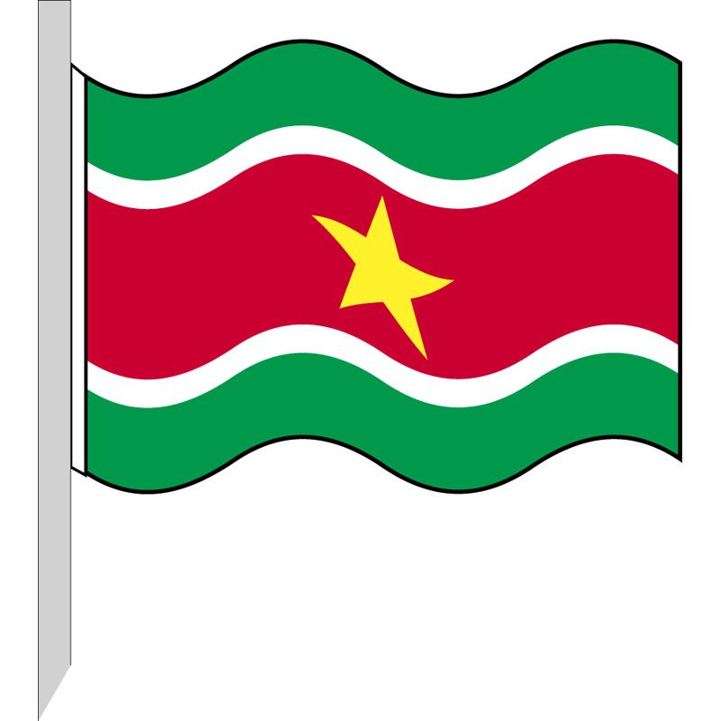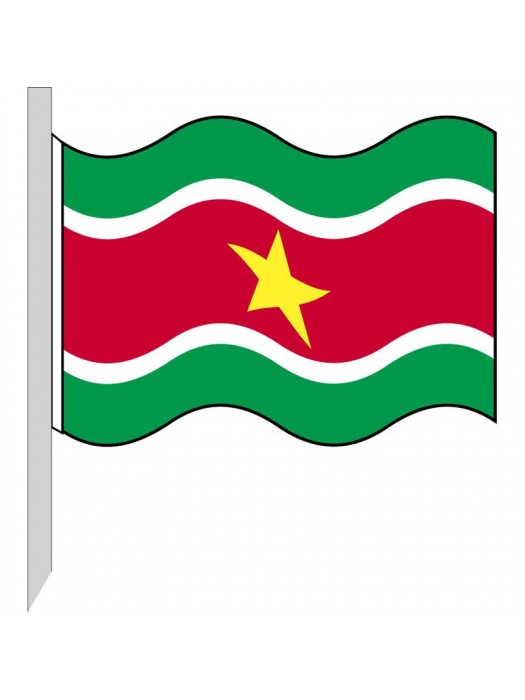Bandera Surinam en tejido de poliéster náutico de 115 g/m2, alta resistencia, terminada con doble costura perimétrica, tira de poliéster resistente, cuerda de poliéster de alta tenacidad, en varios tamaños, uso externo o interno (vara no incluida)