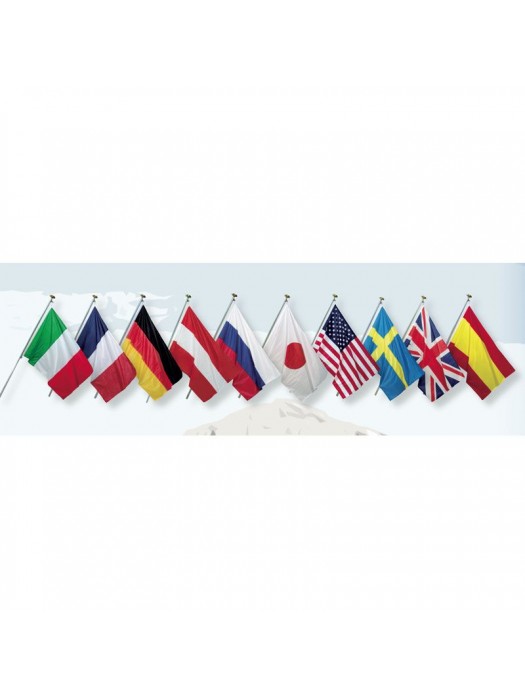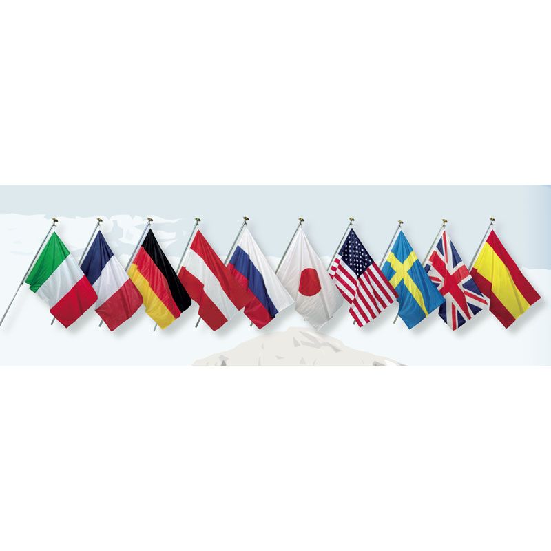 Set Alisei a 10 Bandiere Assortimento di bandiere delle nazioni Italia, Francia, Germania, Austria, Russia, Giappone, Usa, Svezia, Gran Bretagna e Spagna. In tutto 10 Bandiere confezionate con guaina e corda in poliestere all’inferitura. Set di 10 bandiere: Italia, Francia, Germania, Austria, Russia, Giappone, Usa, Svezia, Gran Bretagna e Spagna.