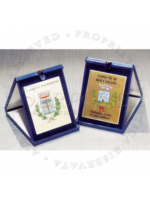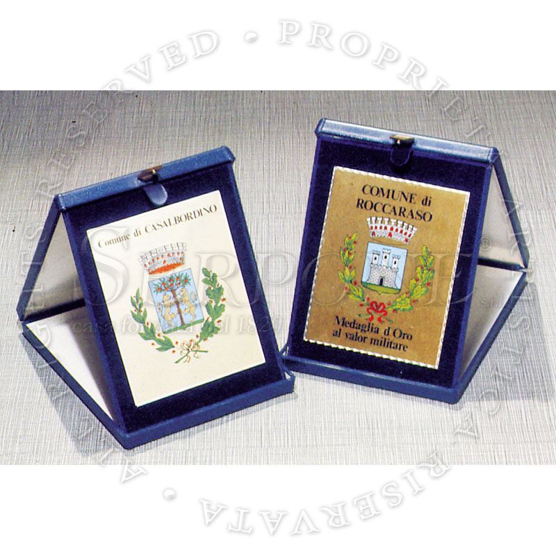 Targhe in alluminio Targhe in alluminio anodizzato argentata o dorato, cm 12 x 16, con stemma e lettere stampati a regola d’arte in serigrafia (tutti colori coprenti), a 5 colori, complete di astuccio. Minimo 50 pezzi. Disponibile anche altre misure e tipi. Art. 208/a - misure cm 12 x 16