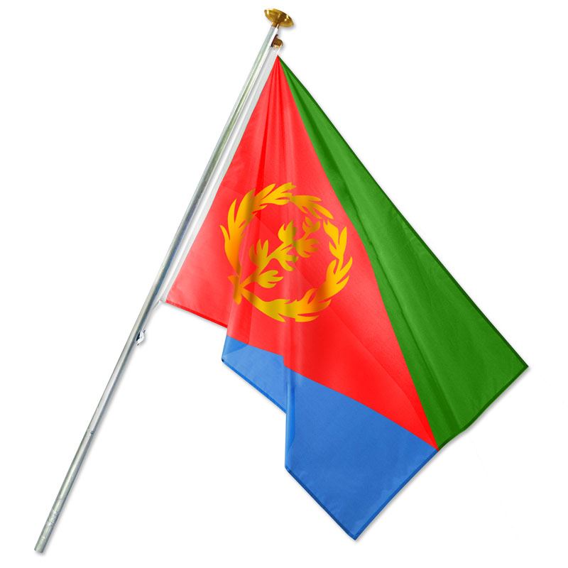 Bandiera Eritrea in tessuto poliestere nautico da 115 g/m2, alta resistenza, confezionata con doppie cuciture, guaina in poliestere robusto, corda in poliestere alta tenacità, in varie misure, uso esterno o interno (asta non inclusa)