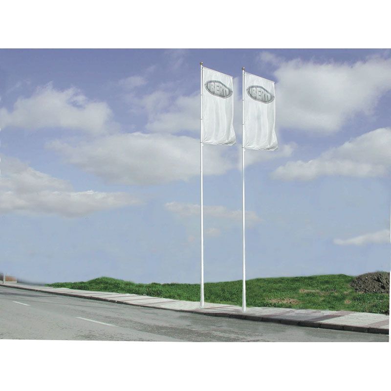 Pennoni in Alluminio Bianco con Braccio Girevole Pennoni con braccio girevole (lungo max cm 150), cilindrici, in alluminio, laccati in bianco, eleganti, completi di pomo in testa, base abbattibile per ancoraggio al suolo e di tutti gli accessori per il montaggio. Forniti divisi in pezzi per facilitarne il trasporto. Installazione e assemblaggio molto semplici, accompagnati da istruzioni. Asta reggi bandiera rotante per sostenere in modo sempre visibile le bandiere, completa di base, da cementare, con una cerniera che permette di sostituire facilmente le bandiere coricando i pennoni, e di riporre i Vs. pennoni smontabili a fine stagione Pennoni in alluminio laccato bianco con braccio girevole e base abbattibile